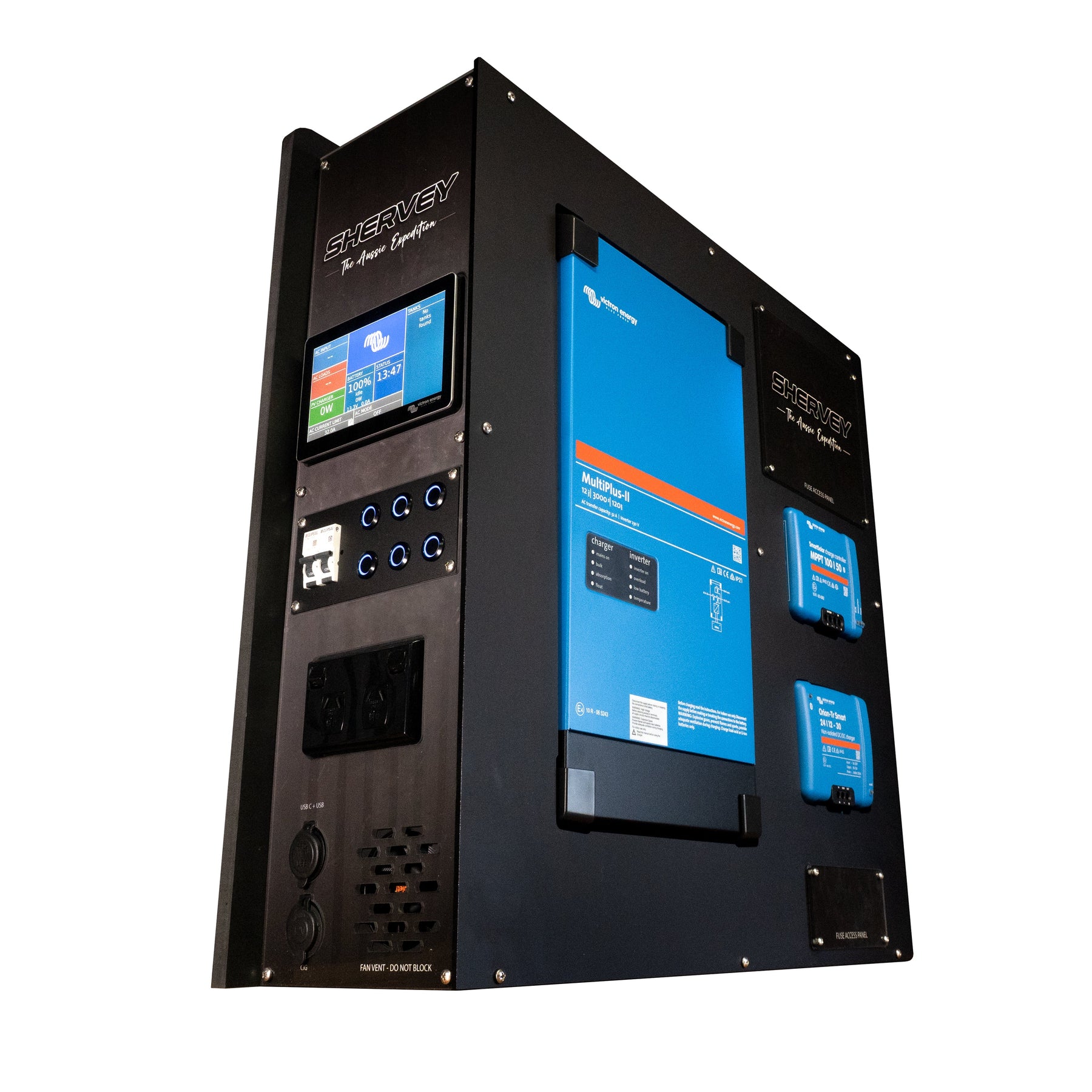 The Shervey brand has been associated with our parent company since 2006, we have been receiving frequent requests to manufacture a quality system using the higher quality Victron components. Whether it's a basic system to power a fridge and a few lights or a complete power solution Shervey have a system to suit your needs. With Shervey's product offerings into this market, we are committed to meeting our customers demands with a combination of the world renowned Victron Energy and our own Shervey innovative products.